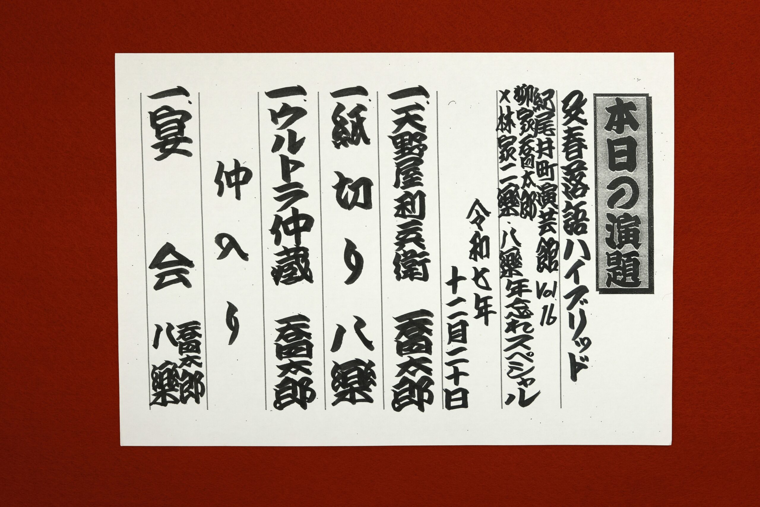 「紀尾井町演芸館Vol.16 柳家喬太郎×林家二楽・八楽 年忘れスペシャル」の演目を公開します。
