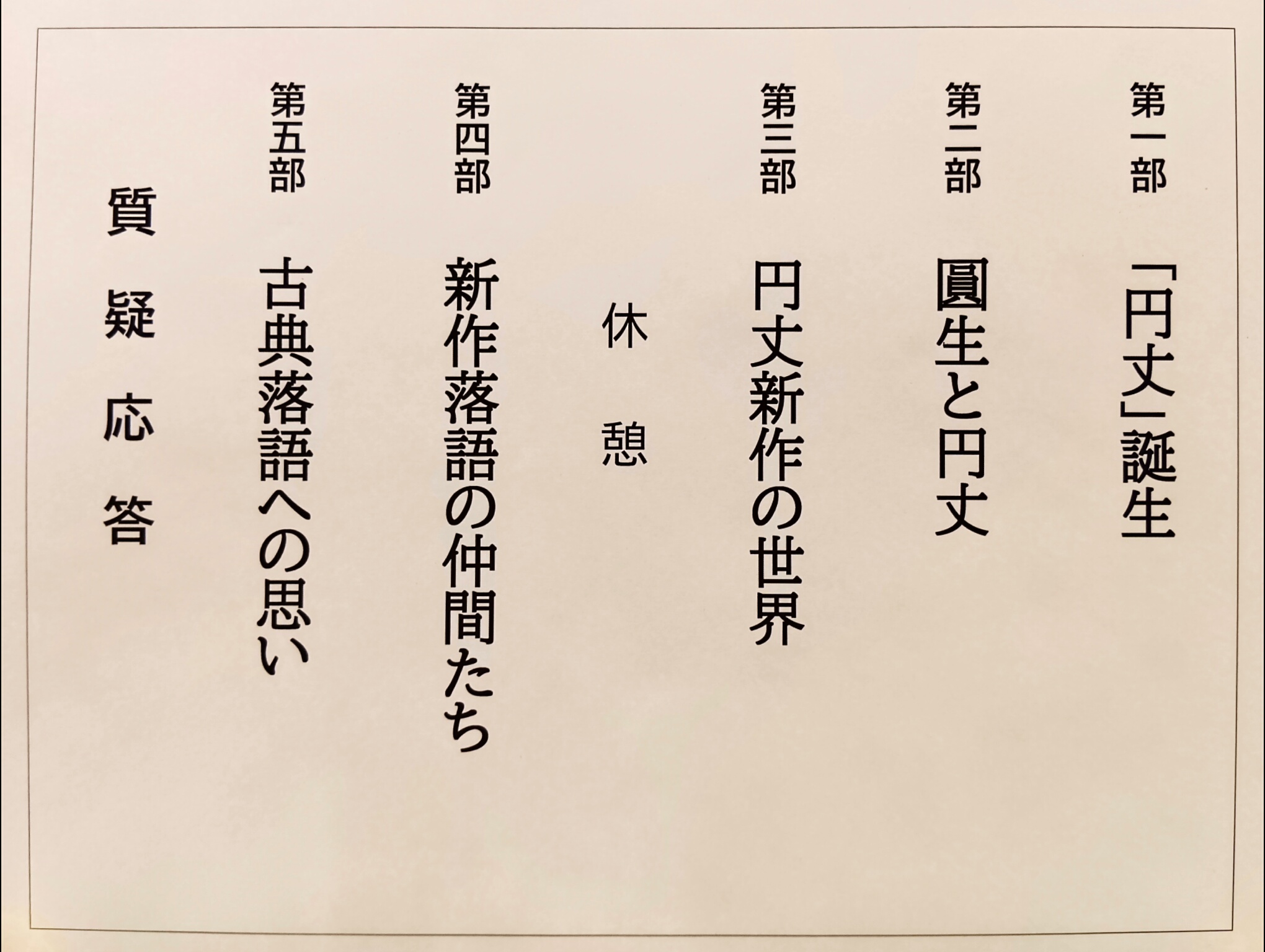 ◎プログラム:「円丈」誕生 / 圓生と円丈 / 円丈新作の世界 / 新作落語の仲間たち / 古典落語への思い / 質疑応答
